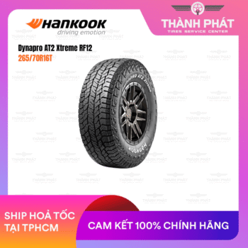 Lốp Hankook 265/70R16T Dynapro AT2 Xtreme RF12 – dòng lốp địa hình All-Terrain (AT) cao cấp, được thiết kế cho SUV và xe bán tải đa dụng, mang lại hiệu năng vượt trội, độ bám chắc chắn và độ bền ấn tượng. Phù hợp cho các dòng xe như Toyota Hilux, Ford Ranger, Mitsubishi Triton, Isuzu D-Max, Nissan Navara, Chevrolet Colorado.
