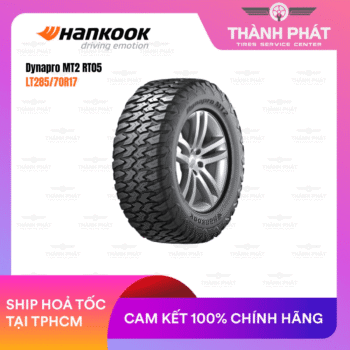 Lốp Hankook LT285/70R17 Dynapro MT2 RT05 – dòng lốp địa hình (Mud Terrain) cao cấp của Hankook, được thiết kế đặc biệt cho xe bán tải, SUV và off-road chuyên dụng, mang lại hiệu suất vượt trội trên bùn, đá, sỏi và địa hình khắc nghiệt, đồng thời vẫn đảm bảo độ ổn định, an toàn và bền bỉ khi di chuyển trên đường nhựa. Đây là lựa chọn lý tưởng cho các dòng xe như Toyota Hilux, Ford Ranger Raptor, Jeep Wrangler, Nissan Navara, Mitsubishi Triton.