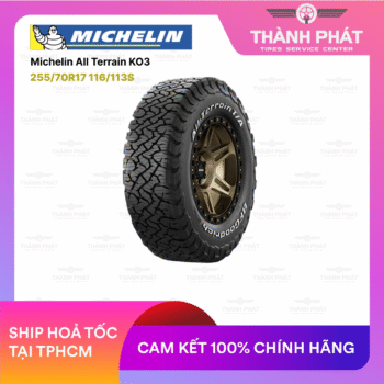 Lốp xe BF Goodrich 255/70R17 116/113S All-Terrain T/A KO3 là dòng lốp đa địa hình (All Terrain) thế hệ mới nhất của BF Goodrich, được thiết kế cho SUV và bán tải hiện đại cần sự linh hoạt, bền bỉ và hiệu suất vượt trội trên mọi loại đường.
