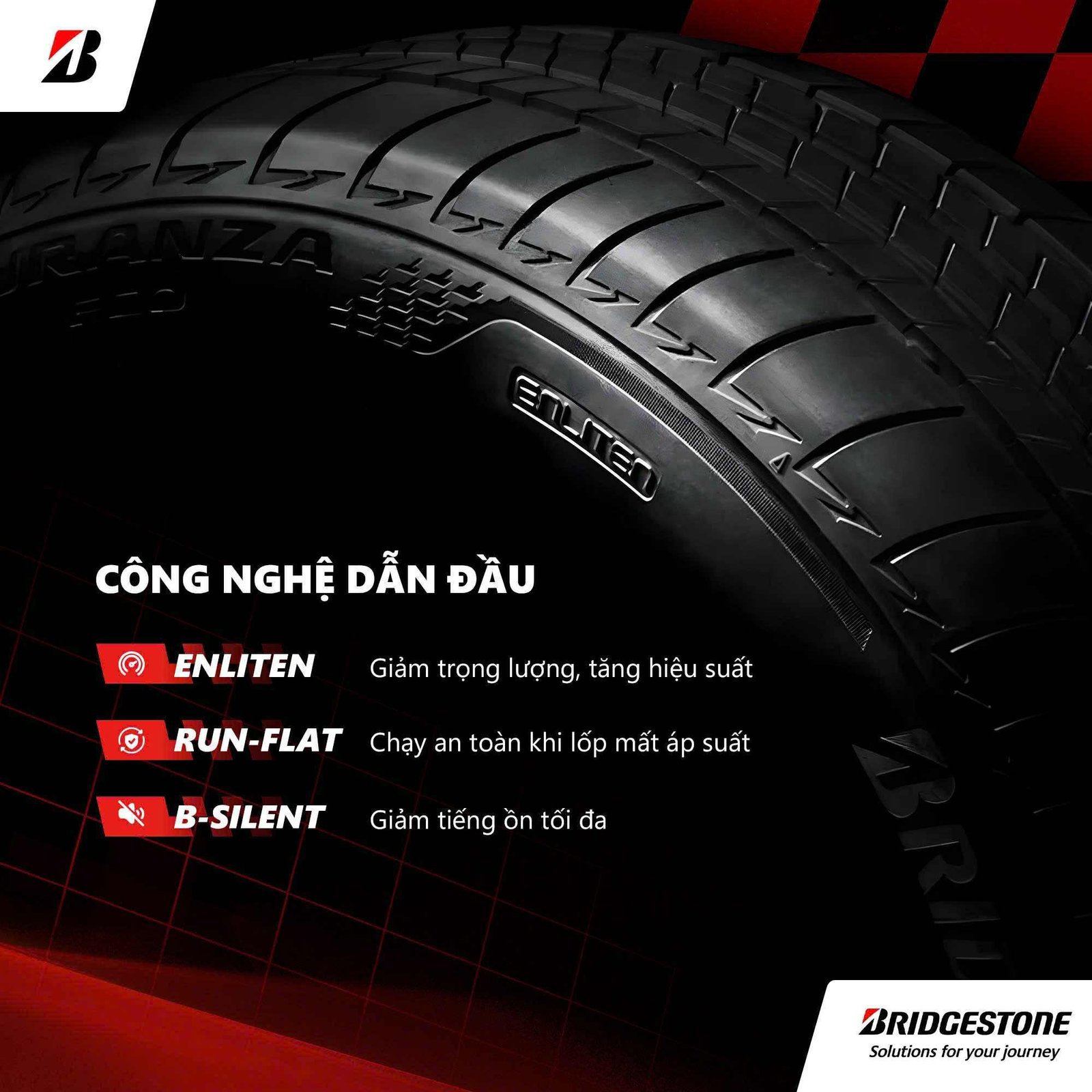 Độ bền cao: Made in Indonesia, sản xuất theo tiêu chuẩn toàn cầu của Bridgestone.